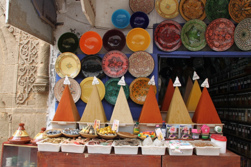 Selve Medinaen (gamle byen) var en opplevelse å få med seg. Fargerike klær, Marokkanske tepper, trearbeid, krydder formet som pyramider, slakt, grønnsaker og frukt, høner og kaniner – alt tilsalgs, løshunder og katter, og gamle mystiske og sjarmerende alladin liknende Riad (gjestehus). Alt klemt inn i trange gater som går i alle retninger. Do besøk her i medinaen er dog ikke som hjemme, men Jonas har sitt eget syn på det:) Inne på internettkafèen må Jonas tisse og vi får låne doen i 2 etasje. Opp en smal vindeltrapp med løse planker til trinn. Inn på skitten do, hull i golvet. ”Oj, mamma e det her doen??” Ja, man ska tiss der det e hull i golvet.. Så kommer det: ”Du mamma, det her e den kuuleste doen vi nån gang har vært på. Skikkelig super kul!” 🙂 Sånn kan man også se på det….. 🙂