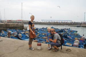I Essaouira var det en god del turister. De har en lang fin badestrand, men det er ofte store bølger og mye vind og egner seg dermed ikke like godt til bading. Men skal trekke en god del windsurfere og kitere. I byen kan man også ta et semester fransk eller arabisk. Samt en marokkansk kokkeskole kjører kurs daglig for turistene. Også her er lokalbefolkningen veldig trivelig. Det er bare ungguttene som driver med en del beautiful og I love your body snakk til Charlotte. Her var det også mange kvinner og barn ute på kvelden i gatene. Ellers er det mest menn vi har sett i Marokko. Etter 2 netter bestemte vi oss for å dra om morgenen ned til Agadir. Etter at Bjørn Arne hadde sjekket ut og fått stemplet passene, fylte han diesel og vi var klare til å dra. Vi har hele tiden hatt en selvutnevnt hjelper her i havna. Som har fulgt Bjørn Arne til havnekontoret (selv om han har vært der før) og hjelper til med å dra i tau og prøver å organisere for oss. Idet vi skal dra lurer han på om han får øl av oss (han hadde vel ikke hjelpt til nok for å be om bakkesch)… noe han jo får. Med et smilende Bon Jour fra Ahmed tøffer vi ut av Essaouira og kjenner en frisk luft fylle lungene mens havna og måkeskrik forsvinner bak oss.