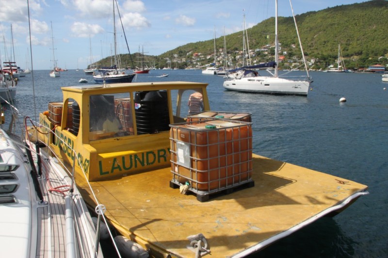 Vi fyller vann og diesel, samt får levert skittentøy