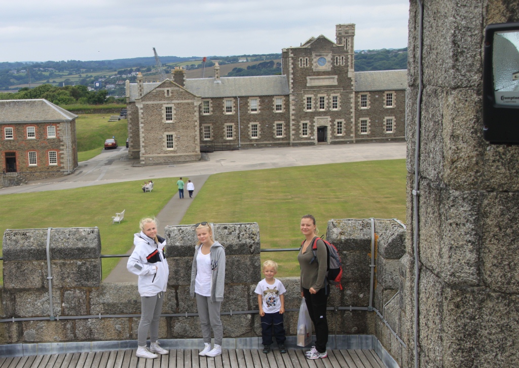 Dessverre regnet det, og det var tykk tåke det meste av tiden så utbyttet av turene ble ikke like bra som håpet. Jonas er veldig glad i å dra på piknic. Og en av dagene gikk vi opp til fortet i Falmouth, Henry VIII’s Fort, bygd  rundt 1550. Ett imponerende byggverk.  Vi hadde med mat og drikke i sekken, lekte sisten og koste oss. Sola var endelig kommet tilbake og det var den varmeste dagen på lenge. Torsdag 1 Juli startet vi tidlig om morgenen, i regn og tett tåke kjørte vi jentene til Gatwick for å fly hjem.